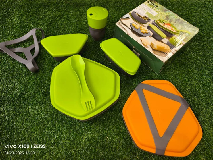🥣🍽 ست ظروف کوهنوردی 8 تکه Crivit 🍽 مناسب یک الی دو نفر 🍽 وزن:400 گرم 🍽 جنس: پلی پروپیلن{عاری از ماده Bisphonel-A} 🍽اقابلیت شستشو: دستی و ماشین ظرفشویی